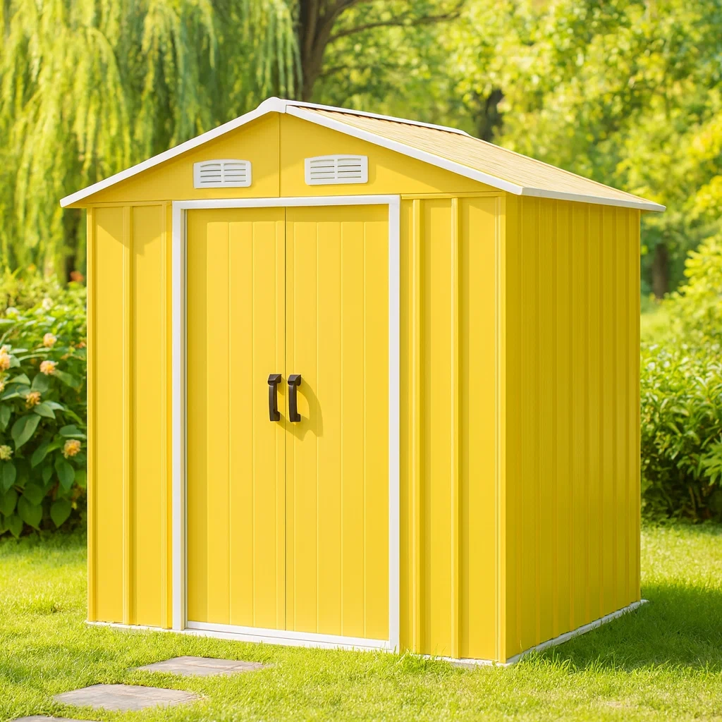 Abri de jardin en métal de couleur jaune avec portes doubles