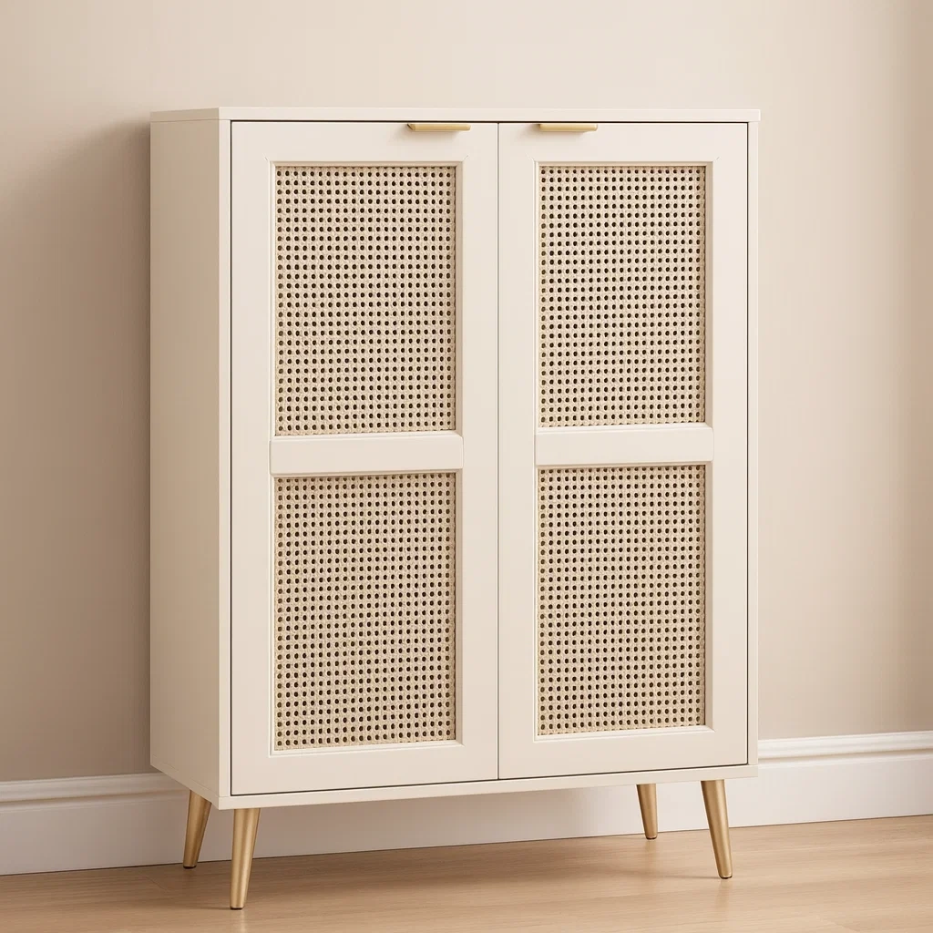Matériau : Structure en MDF, portes avec insert en rotin naturel, pieds en métal