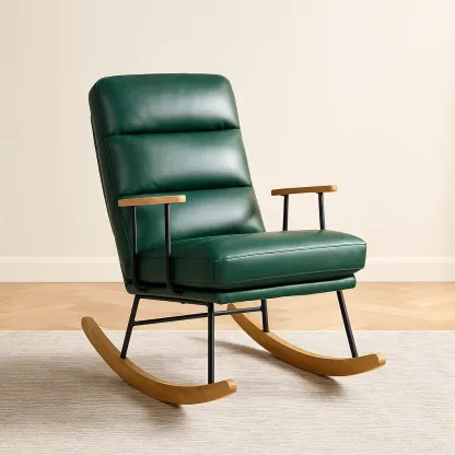 Matériau : Revêtement en cuir synthétique ; cadre en métal ; accoudoirs et patins de bascule en bois