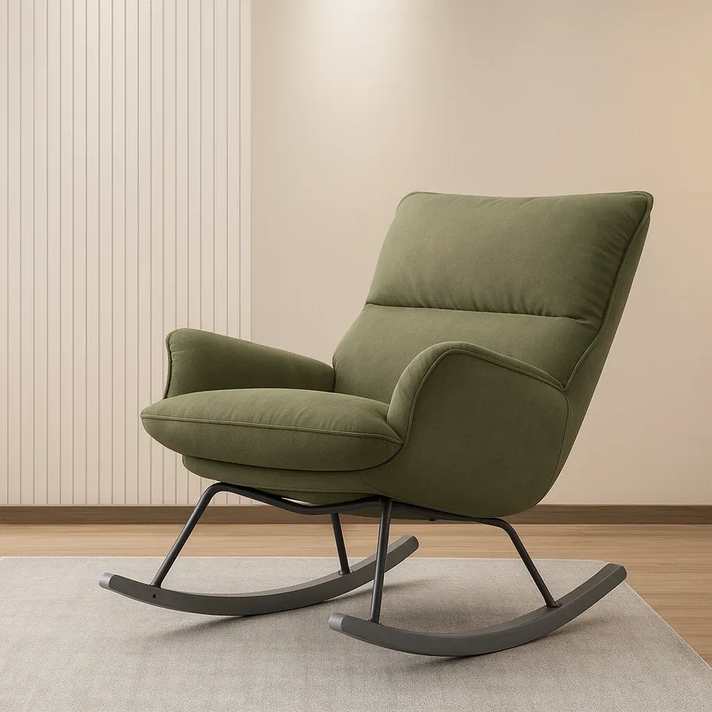 Fauteuil à bascule en tissu de couleur verte avec structure en métal